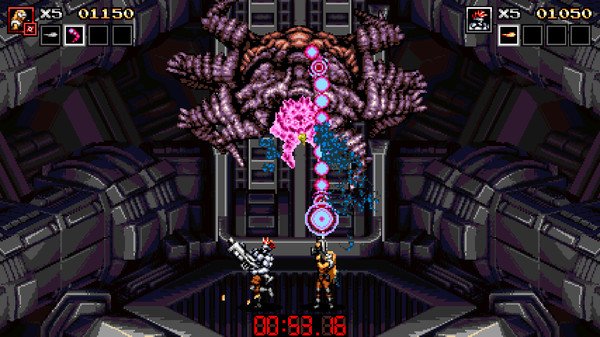 Which goes for the game as a whole; it certainly continues the tradition of being a tough challenge from those classic, run and gun action games too. Though very challenging, it’s playable, addictive and doesn’t ever feel unfair. Just as in those older games, another player can join in for some local multiplayer action too.
