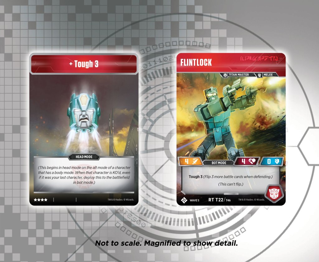 So it comes as no surprise that with the newest wave – Titan Masters Attack – Wizards of the Coast seem to have excelled themselves once more. Not only are we going to see the introduction of fan favourite Autobot special-forces team The Wreckers, but additionally – and perhaps most excitingly – we will also see the introduction of Titan Master characters (as you’d probably expect, given the Wave’s title). Titan Master character cards have two parts – a head and a body – which can be mixed and matched at will. When the body is KO’d, the head deploys as a separate character entirely.