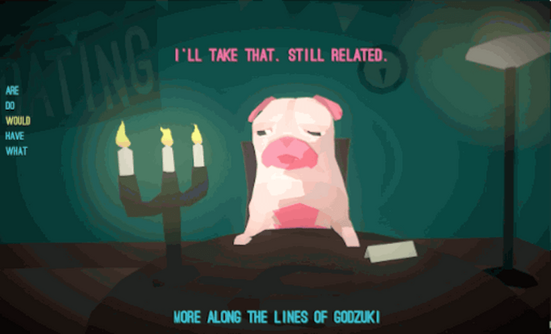 After an awkward back and forth, exchanging questions, answers and small details, time is up and another pug comes along, so you can do it all again. The pugs all seem to be snarky, sarcastic, somewhat insulting and standoffish; despite this, they’re often quite charming to watch, with their air of endless disappointment and struggles to make eye contact.