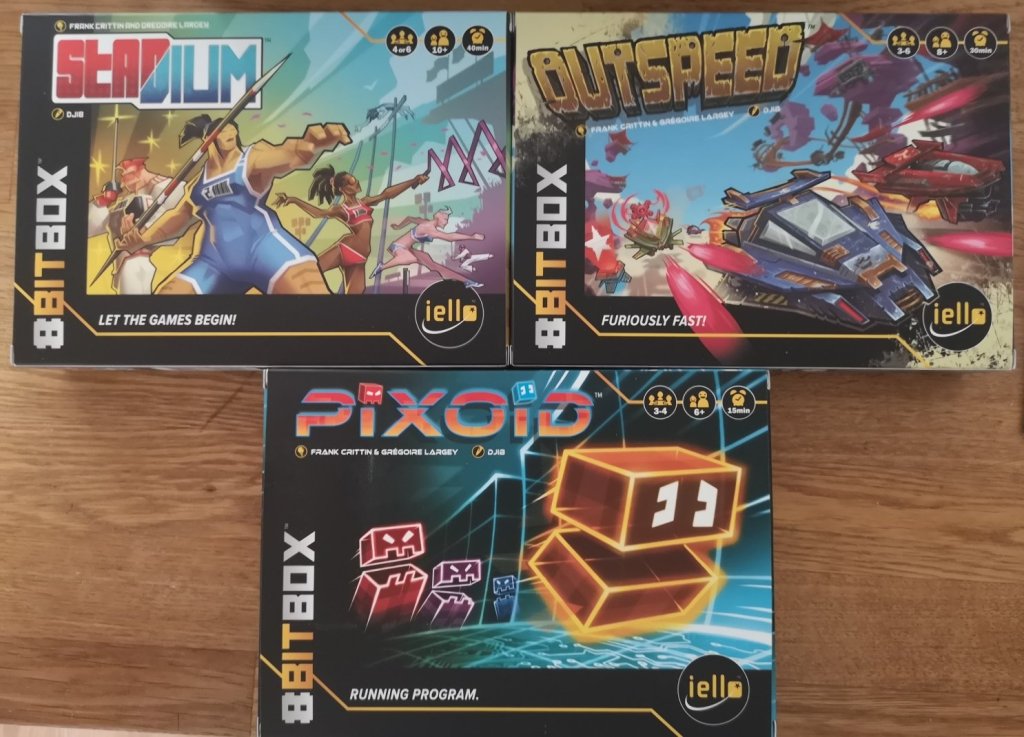 Iello’s 8-Bit Box is an absolutely fantastic concept. Styled as a classic console, it comes bundled with three games that each use their own custom components as well as shared bits and pieces from the core box, such as player controllers, dice and cubes. Each of the separate titles is packaged like a SNES game, with many video game-esque design elements to go with their themes.