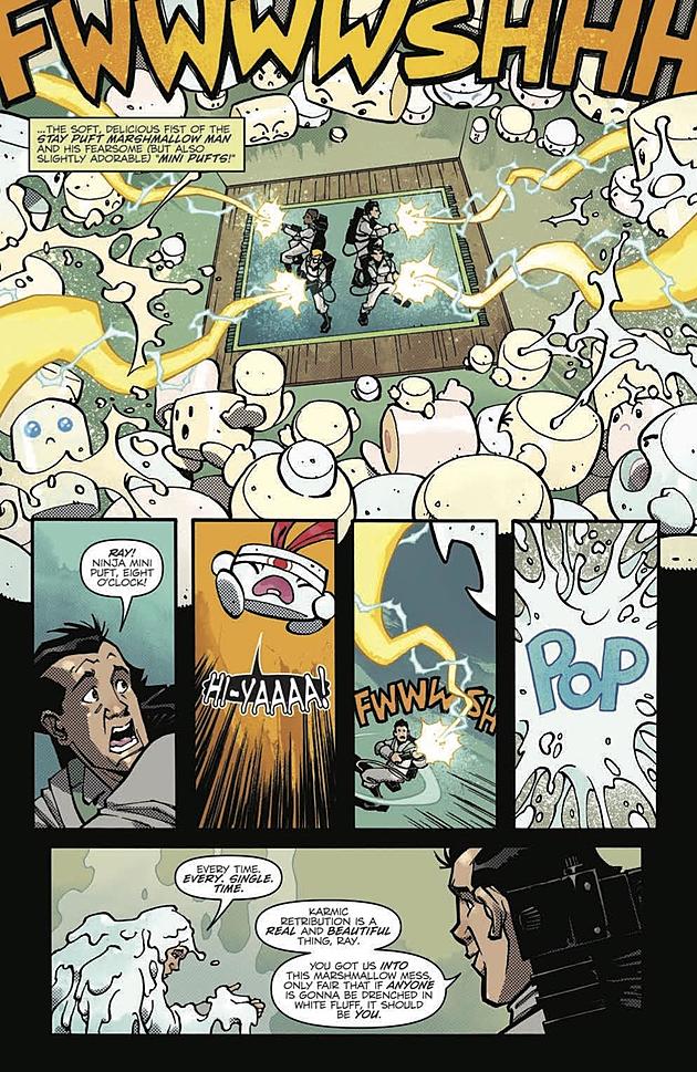 A few months have passed since Gozer descended upon New York as a giant piece of cute confectionery – and the Ghostbusters aren’t exactly beloved by the people they tried to save. Being blamed for the emergence of Gozer – and despite their ongoing attempts to clean up the mess he’s constantly leaving in his wake (in the form of Mini-Pufts, mostly – I guess the makers of Ghostbusters: Afterlife checked out this comic too) – means that they aren’t the heroes they were lauded as by the end of the first film (though in fairness, they weren’t exactly being treated as heroes by the second film either, which was an odd direction for Ghostbusters 2 to take after the joyously upbeat 1984 film’s climax). Oddly, Gozer himself hasn’t exactly been having much fun after his emergence into 1984 New York, being trapped in his sweet, cute form – and he’s keen to get back to the dimension he escaped from to rule that instead. The Ghostbusters agree to help him – and hatch a plan to rid the world of him once and for all. If only they’d stopped following their own advice and crossed the streams in the first place, right?
