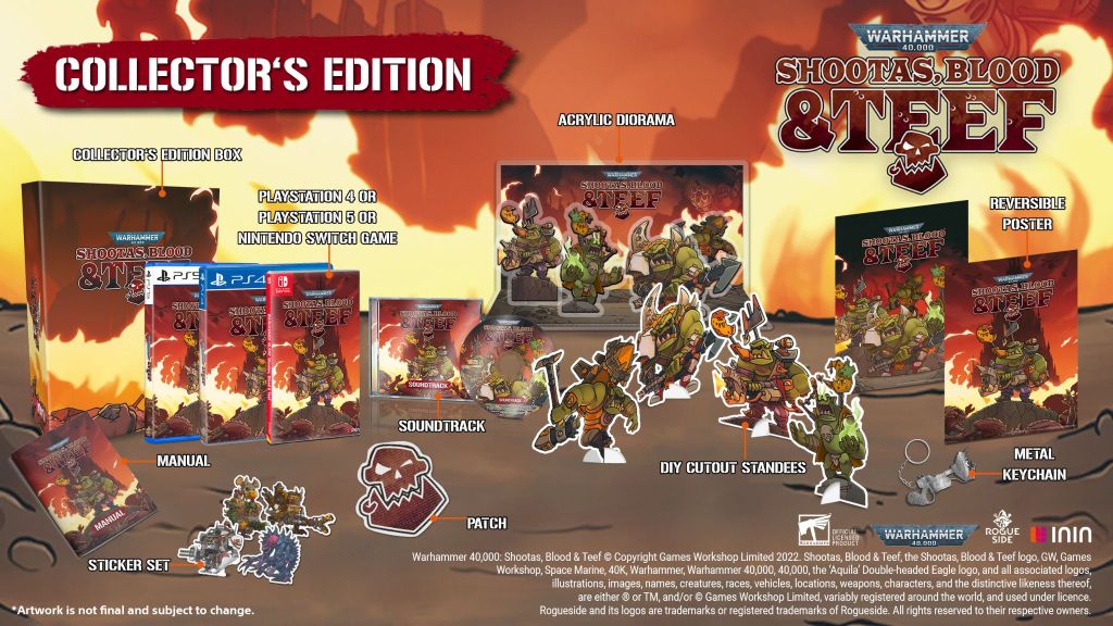 The special editions of Warhammer 40,000: Shootas, Blood & Teef will be available to pre-order from Strictly Limited Games and Gamesrocket from the 12th of May, but be warned – the Limited Edition is limited to 3,500 individually numbered copies for Nintendo Switch and 1,500 for PS4 and PS5 each, with the Collector’s Edition limited to 2,500 copies for Nintendo Switch and 1,000 for PS4 and PS5 each.