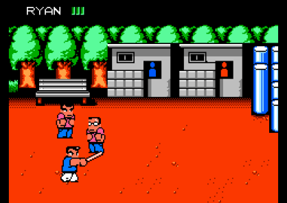 Sports titles Super Spike V’ball – a volleyball game – and mini-game tournament game Crash ‘n’ the Boys: Street Challenge did nothing for me, but I did find Super Dodge Ball to be fairly entertaining, despite a steep learning curve. Once you get your head around the timing of catching balls and trying to whack your opponents with them, it does have a certain charm. All three share a very similar look and feel in character design – which is also seen in the last (and best) game on the cartridge: River City Ransom.