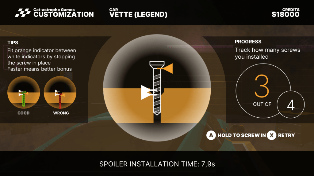 You can simply utilise a slider to adjust many aspects of your car’s performance, but there are mini-games for some tuning tasks that’ll help to give you an edge too (or not, if you don’t do very well at them!).
