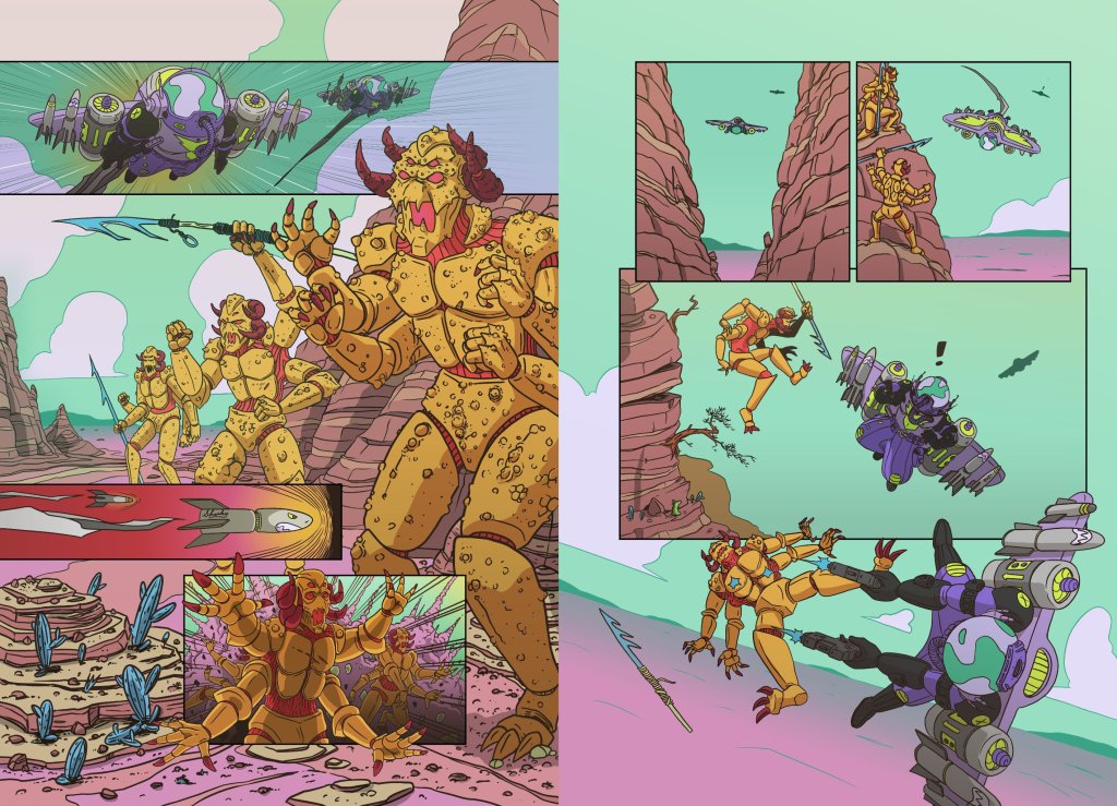 As was the case with the third issue, Filteau’s artwork is incredibly detailed, evoking the work of Geof Darrow; despite this level of detail, the storytelling has a real clarity; there were maybe one or two minor moments where I wasn’t sure what had happened, though in at least one of these the incident was explained clearly a few pages later.