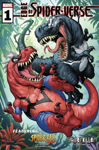 In this first issue of a new Edge of Spider-Verse mini-series, we first catch up with Spider-Rex, the prehistoric Tyrannosaurus version of Peter Parker. It’s not bad – the art is phenomenal and some of the character designs, particularly the venomized dinosaur, are fantastic – but it’s overly reliant on puns and silent Ps and Ts, to the extent that it becomes a bit of a slog to read.