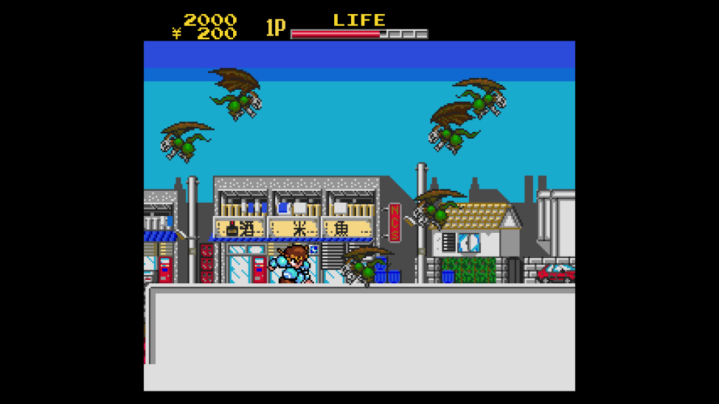 Featuring a choice of playable characters – Japanese school kids Tasuke and Kyapiko – it’s clear that inspiration was taken from Mega Man, both in the style of its gameplay and its plot.