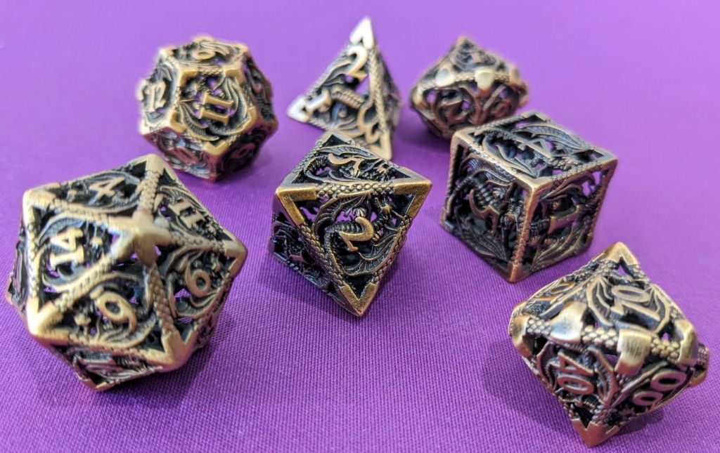 Many thanks to Dice Dragons for sending me a set of Bronze Hollow Dragon Dice for review purposes.