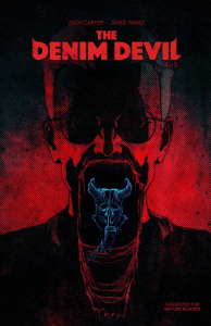 Writer Zach Carter and artist Jared Yanez continue to impress with this penultimate chapter of The Denim Devil; not only is it still a superb pastiche on slasher fiction tropes, it still manages to pack in scenes of genuine terror, horror and gore alongside those comedic elements.