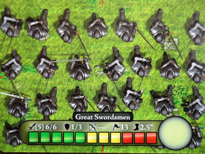 Damage is marked off on the cards – each unit has a damage bar to keep track of how many hits they have taken.