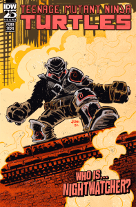 It’s headed up by an extended preview of the first issue of TMNT: Nightwatcher #1, which brings the mysterious, titular vigilante figure out of the 2007 TMNT movie continuity (which it debuted in), and into the IDW Turtles universe.