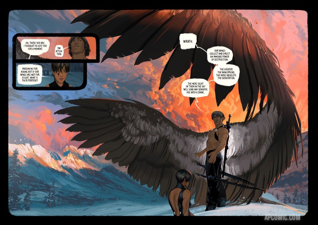 One thing that’ll immediately strike you when seeing Angels Power is just how gorgeous the artwork is, with every page, every panel even, featuring absolutely incredible visuals, thanks to the very talented writer/artist, Axel Hutt.