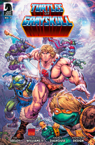 One of the coolest things about this Teenage Mutant Ninja Turtles/Masters of the Universe crossover is right there on the cover. No, I’m not talking about the phenomenal Freddie Williams II/Andrew Dalhouse art (more on that shortly!), but the actual title of the comic.
