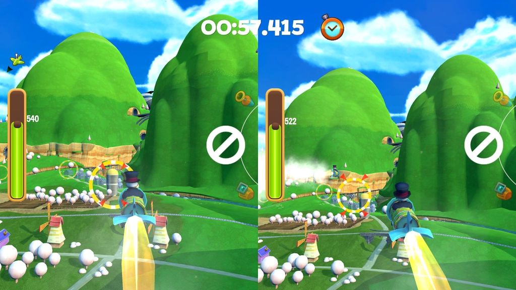 It could also do with a bit more of a robust tutorial on your plane’s different functions, because it took ages for me to figure out how to reload my water balloons! There’s also a lack of camera control, which can make manoeuvres in some spots quite difficult.