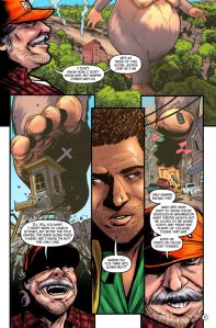 Writer Fred Millard (yes, the main character has the same name as the pseudonymous author, whose desire to remain anonymous is an unfortunate necessity in the current US political climate) and artist Seb Valencia have crafted a comic that’s impressively produced, taking aim at an array of targets beyond the obvious one that the monster so clearly represents.