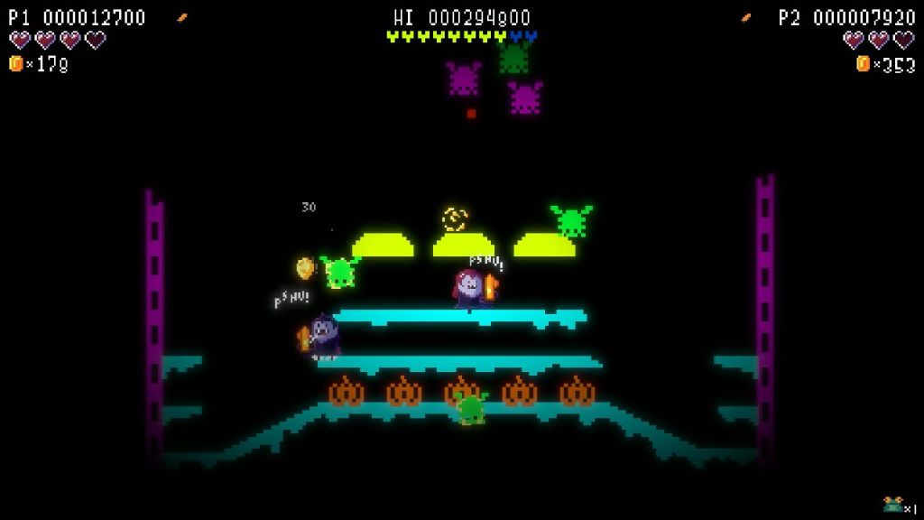Of course, this being a Flynn’s Arcade-published game, Flora and Fang has gorgeous pixel art visuals (though they can feel a bit dark) and incredibly challenging gameplay, which sees your vampire spraying bugs with insecticide multiple times before they can be removed, with them often leaving coins behind after their demise.