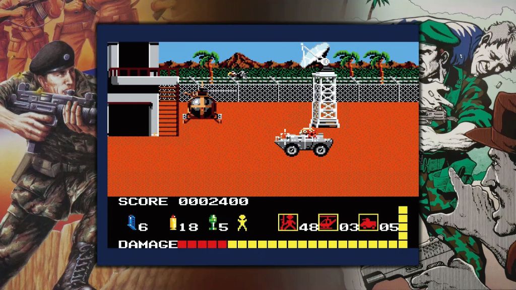 Adding to that is the fact that home ports of the four games, with multiple versions in some cases, have been produced, but aren’t included. You can see the Master System port of Space Gun above, and the version of Operation Wolf for the same console below, for example. Instead, these are locked in a rather costly DLC pack, which is not far off the price of the base game. Given how stingy the overall package feels in general, this only exacerbates the situation.