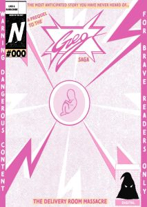 With the sub-title ‘The Delivery Room Massacre’, you know this ain’t going to be an experience that’s subtle, or in any way restrained. Issue zero tells the story of where Greg comes from, and of what happens to everyone who gets a glimpse of his dangerously handsome visage.